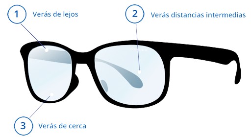 ¿Qué son las lentes progresivas? Las lentes progresivas tienen una graduación progresiva de cerca a lejos. De este modo, la parte inferior de la lente está graduada para visión de cerca, la parte central está graduada para la visión intermedia y la superior para visión de lejos. Desmintiendo mitos sobre las progresivas. Gracias a que ha habido muchas mejoras en estos casi 50 años, se han podido desmentir ideas erróneas sobre las lentes progresivas, pudiendo afirmar que :